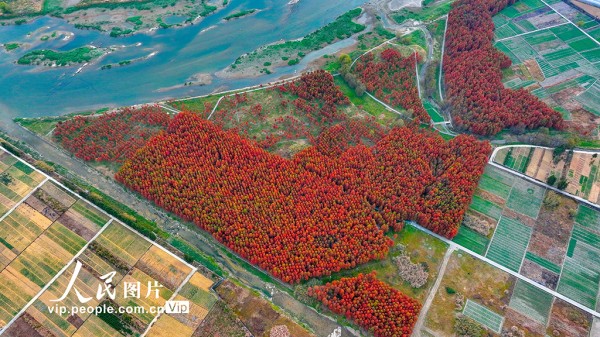 2025年12月10日,浙江省杭州市淳安县汾口镇红星村,武强溪生态湿地的水上森林色彩斑斓,风景如画。