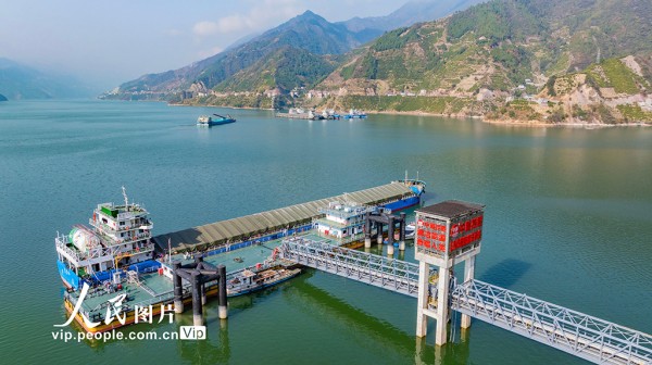 该码头是三峡库区目前唯一常年稳定运营的LNG水上加注站,自投用以来已成为长江航运能源转型的关键枢纽,每年可为船舶减少污染物排放超万吨,并为使用清洁能源的船舶节省约30%的燃料成本。这座“水上能源驿站”凭借成熟的运营模式和显著的减排效益,为长江航运绿色转型提供了重要支撑,持续注入绿色发展动能。彭强摄(人民图片网)