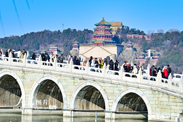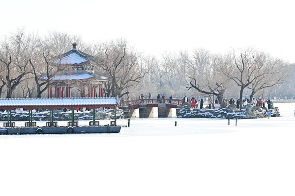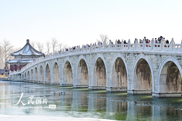 2025年12月14日,北京颐和园雪后银装素裹,风景如画,吸引众多游客前来观赏。袁新宇摄(人民图片网)