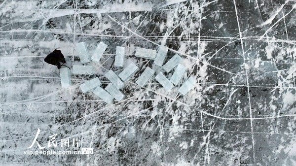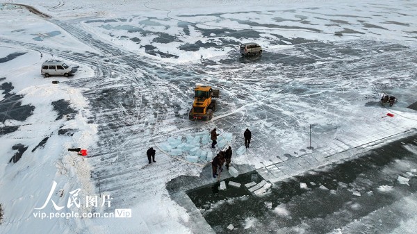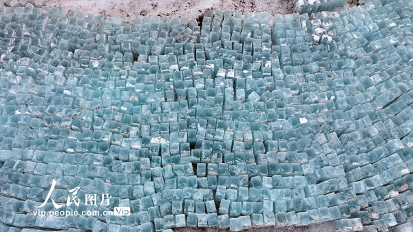 目前,新疆巴里坤高家湖迎来采冰期,工人用冰锯切割湖面,再用长钩将厚实的冰块捞起。采出的冰块被整齐码放,在阳光下折射出蓝色光泽,成为冬日湖畔一道独特的景致。孙继虎摄(人民图片网)