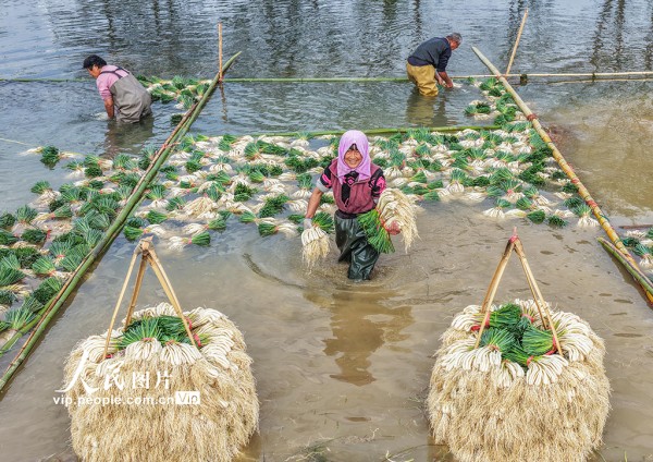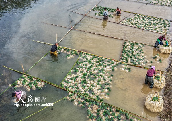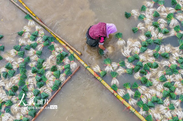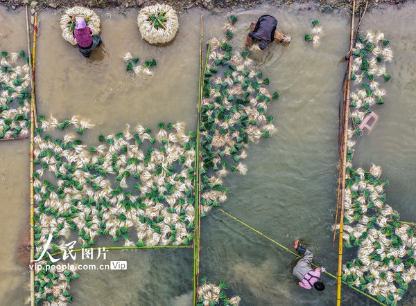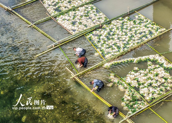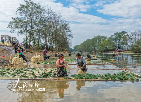 2025年12月16日,湖南省永州市道县营江街道车边社区,农民们正在清洗藠头。近年来,道县推广“水稻+藠头”水旱轮作模式,帮助农民实现增收。蒋克青摄(人民图片网)