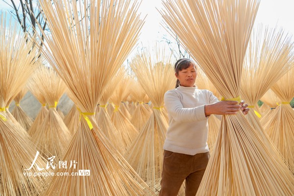 近年来,长兴县积极推动毛竹资源转化与精深加工,将竹材制成竹筷、竹帘、竹椅、凉席等产品,带动村民增收,助力乡村振兴。陈海伟摄(人民图片网)