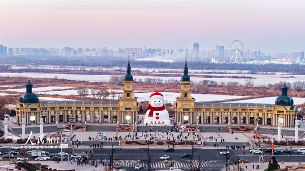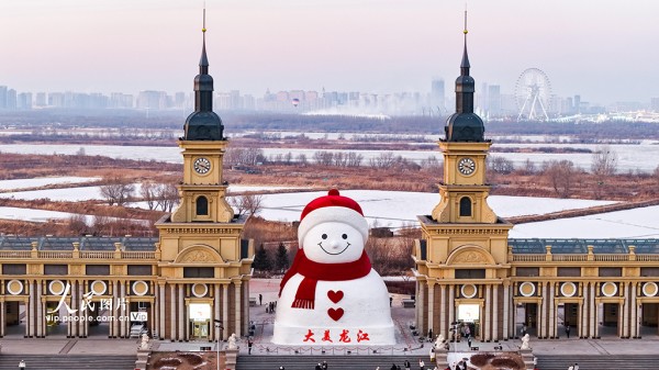 2025年12月15日,哈尔滨群力音乐公园大雪人完成主体施工,进入细节完善阶段。大雪人高19米、长14米、宽11米,总用雪量超3000立方米,较往年增加1200立方米,规模为历年最大。唐守弘摄(人民图片网)