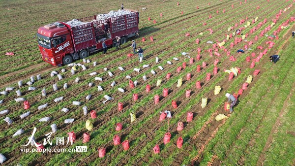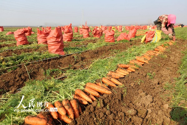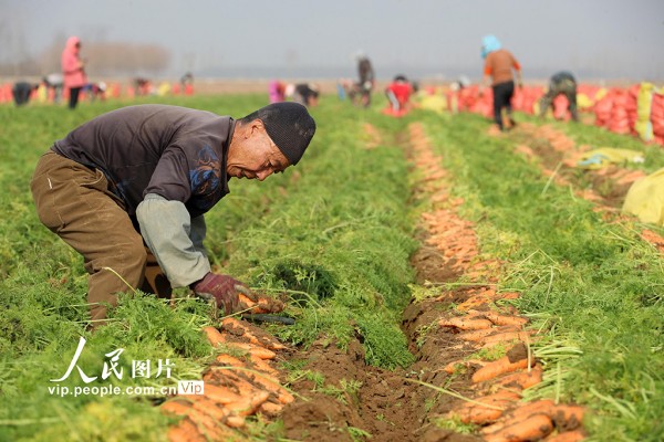 近年来,鄢陵县因地制宜发展胡萝卜种植,引进新品种和推行无公害生产。胡萝卜品质好、产量高,吸引来广东、湖南等地菜商。牛书培摄(人民图片网)
