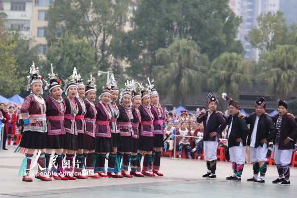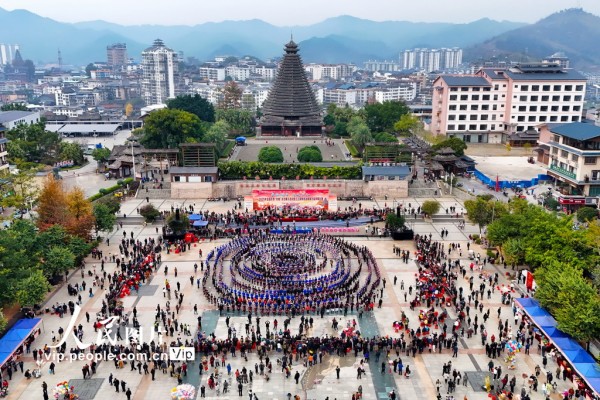 2025年全国冬季“村晚”示范展示活动暨广西三江侗族自治县第九届多耶比赛在当地多耶广场举行,各族同胞身着盛装、载歌载舞欢庆美好时光。多耶是侗族融说、唱、跳于一体的民间集体舞蹈,承载着民族的历史记忆与文化传承。李尚引摄(人民图片网)