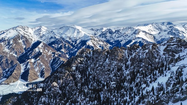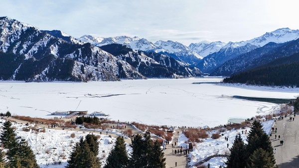 2025年12月21日,新疆昌吉回族自治州阜康市天山天池景区冬景如画,吸引众多游客观光游览。
