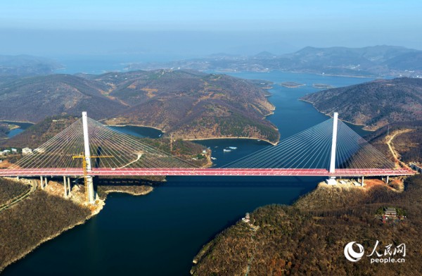 人民网南阳12月28日电 (记者王玉兴)12月28日,位于丹江口水库库区的渑淅高速丹江小三峡特大桥,工人正忙着清扫桥面、拆除塔吊等附属设施,为12月30日大桥的开通运行做最后准备。