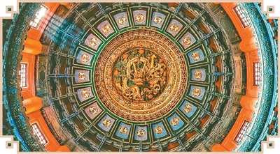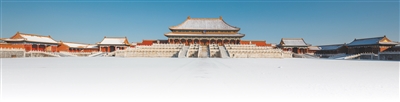 空中俯瞰,一条中轴纵贯,太和、中和、保和三大殿沐光而立,集中国古代传统宫殿建筑之大成,体现绵延不绝的“中”“和”哲学思想。