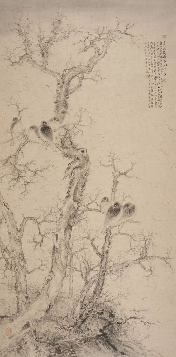 万物有灵,春山可望。庄子“与物为春”的智慧,在万鸣先生的笔墨间化作可见的生机,翎毛振翅含暖,高士凭石悟真,枯木也孕着新芽,每一笔都是与天地的私语,满载从广大处着眼,从精微处入手,又从平实中追求的传统智慧,更体现着观物取情的生命共情。