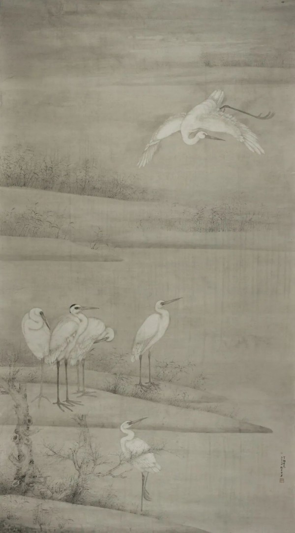 “搜妙创真”是五代画家荆浩在《笔法记》中提出的画学核心,刘万鸣先生以此为大尺幅创作的圭臬。他认为“大画要有小画的精微,小画要有大画的境界”,这在其宏构巨制中体现得淋漓尽致。此单元作品,如《天地悠然》等,远观气势撼人,近察笔无妄下。其精微处,在于对禽鸟羽片结构的精准刻画、对枝叶穿插走向的理性掌控,这源于他对宋画“格物”精神的继承;其博大处,在于对画面空白的诗意经营与物象气脉的贯通,这又可见八大山人对其构图哲学的深刻影响。正如评论家所言,刘万鸣“于大景之中营造出静穆与幽深”,他将花鸟画从传统书斋把玩引向了一种具有现代展厅张力的“大景花鸟”格局,展现出吞吐大荒的综合驾驭能力。