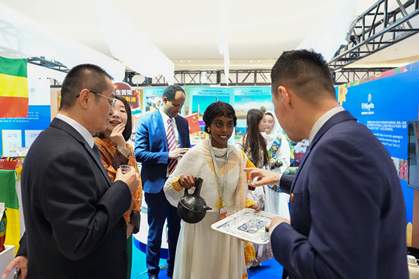 2月4日,在“共享大市场·出口中国”2026年首场活动暨北京国际精品荟的进口商品推介区,参观者在品尝展出的埃塞俄比亚咖啡。