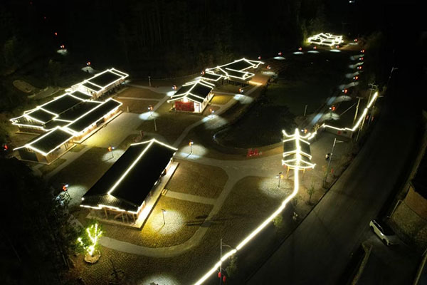 作为集镇基础设施改造提升的核心工程,槐南镇“夜景亮化工程”突破单点照明的局限,率先构建起了“一核引领、三线联动、全域覆盖”的照明体系。