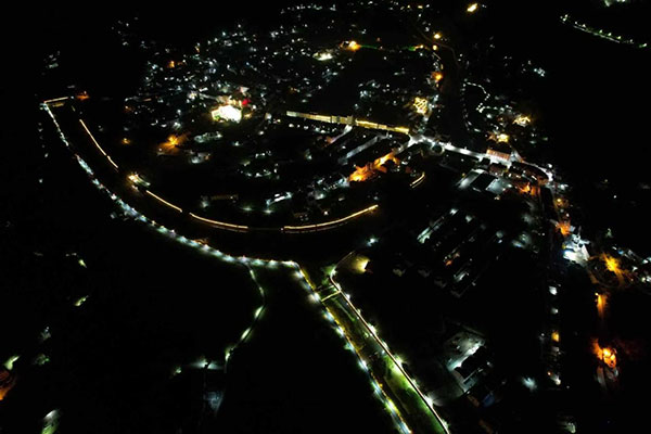文江溪畔的休闲步道上,沿河三千米的金色灯带宛如轻纱般缠绕着岸线,倒映在潺潺流水中。晚风拂过,光影摇曳,勾勒出“灯在水中游,人在画中走”的滨水画卷。集镇核心区域的照明工程已全面铺开,沿街商铺与农特产品展销点被暖光温柔点亮,休闲广场新添置的射灯流光溢彩,与广场舞的欢快旋律交织共鸣。这不仅让夜间消费场景愈发热闹,更为邻里互动搭建起了温馨的载体。镇村主干道新布设的290余盏路灯整齐排列,柔和充足的灯光不仅串联起南山村、洋头村等沿线村落,更保障了路网通行安全,勾勒出一幅独具槐南韵味的乡村夜归图景。