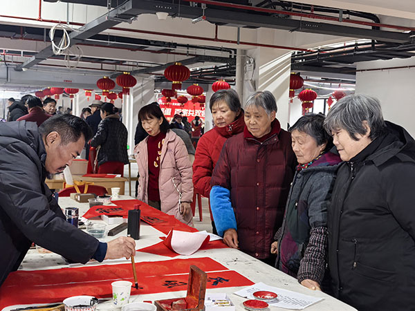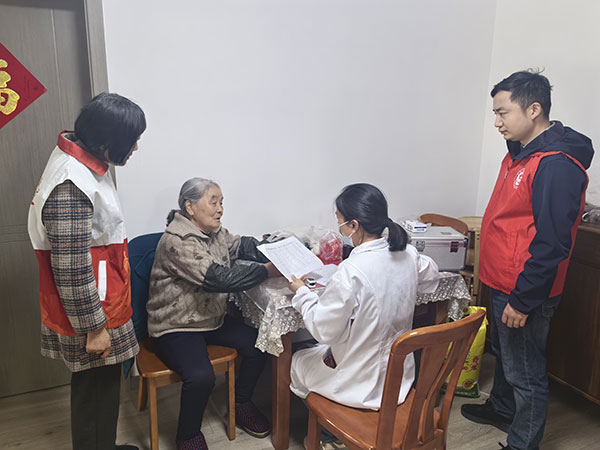 在向居民提供健康与生活服务的同时,格外注重填补老人情感空缺、营造新春氛围。社区党总支定期组织志愿者开展入户探访,陪老人拉家常、聊近况、话年俗,及时反馈生活需求,让服务兼具“专业温度”与“情感热度”。在今年社区刚开展的百家宴上,社区特别邀请到辖区内的高龄、困难老人,通过邻里欢聚,共享社区带来的美味佳肴与文化盛宴,让老人们在烟火气与文化味中感受了社区温暖;上门送春联行动中,志愿者将手写春联送至老人家中,让独居、困难老人尽享年味与关怀。同时,社区还举行了志愿者表彰大会,颁发荣誉证书,为项目持续推进凝聚强大动力。