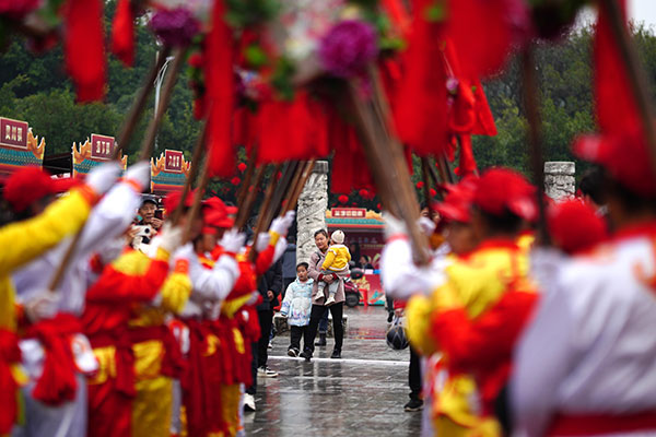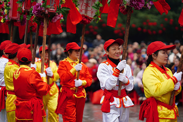 当日,广西桂林市灵川县举办“2026年我们的中国梦·文化进万家百姓大舞台”春节联欢活动。人们开展舞草龙、走牌灯、舞狮子、写春联等丰富多彩的民俗活动,载歌载舞喜迎马年春节的到来。