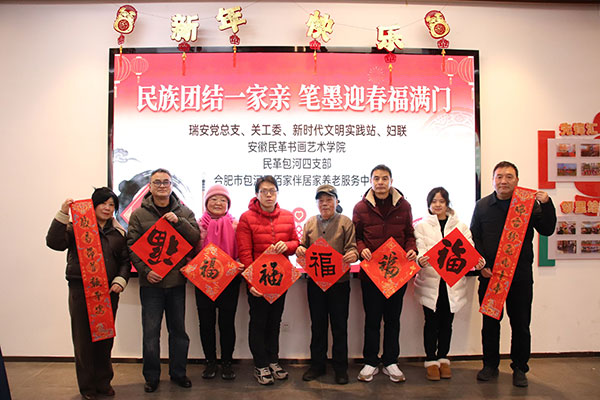 2月7日,安徽省合肥市方兴社区瑞安党群服务站内墨香四溢、欢声不断。由方兴社区石榴红同心驿站、安徽民革书画艺术院、民革合肥市包河四支部共同举办的“民族团结一家亲,笔墨迎春福满门”新春写春联活动在此热闹开展。