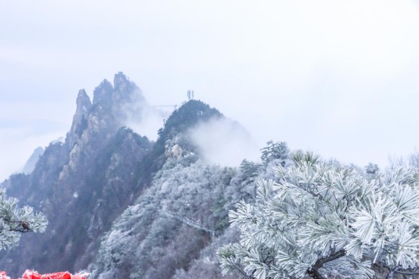 3月至4月的老界岭,冰雪渐融、万物复苏。随着气温回升,万亩山茱萸花、紫荆花、映山红将顺着山势由低向高次第绽放,漫山花海与巍峨山峦相映成趣,而在早春时节,老界岭主峰之上偶有春雪点缀,形成“山下春花烂漫,山上春雪雾凇”的独特景观。