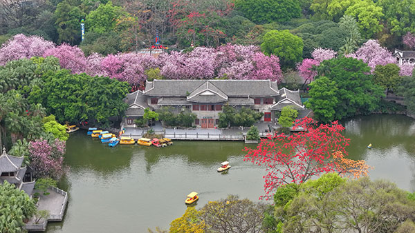 凭着螺蛳粉走红的柳州市,如今又添紫荆花这一“网红IP”,吸引了天南海北的游客纷至沓来。花与城相拥,城因花更美,这份独一无二的春日盛景,成为当地生态优美、市民幸福的生动写照。