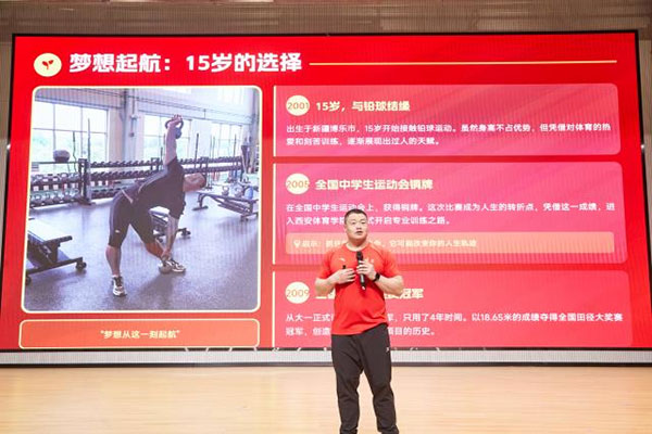 本次“冠军说运动”活动,是学校立足学生身心发展需求,突破传统体育活动模式的首次全新尝试,以“健康第一促成长,活力满格新学期”为主题,将榜样引领、实践体验、精神培育融为一体,让体育教育不止于强健体魄,更在于涵养品格、磨砺意志。活动特邀陕西队男子铅球冠军冯杰走进校园,他结合自身十余年的运动生涯,从少年结缘体育、日复一日刻苦训练,到斩获全国赛事金牌、刷新省级纪录的逐梦历程,用朴实真挚的话语,为全校学生讲述了体育背后的热爱与坚守,传递出永不言弃、勇于拼搏的体育精神,让冠军榜样成为学生看得见、学得到的成长力量。为进一步夯实校园体育专业根基,学校还特聘西安体育学院全国校园足球专家唐铁锋教授担任体育副校长,为学校体育课程优化、特色活动开展、学生运动技能培养提供专业指导,让本次活动更具专业性与持续性。