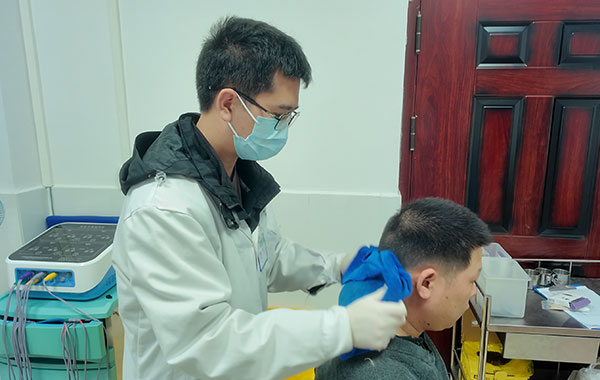 治疗室里,一位五十多岁的务工群众趴在治疗床上,颈肩部针灸针排得齐整。他说自己颈椎病多年,年前就开始脖子疼、头疼,回来先做一轮针灸和熨烫,“热上来,肩就松些。”一句朴素的话,道出了基层群众对中医药最直接的信任。