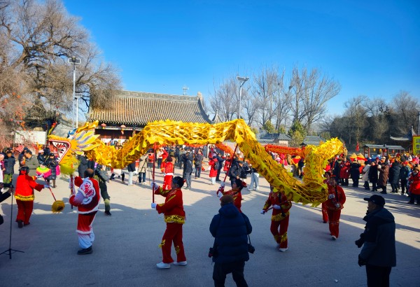 舞龙花轿添喜庆,百家腊粥暖人心。舞龙队的小伙子们舞动着金光闪闪的长龙,在人群中穿梭腾挪;红红绿绿的抬花轿表演,颠得“新娘子”的盖头一颤一颤,逗得孩子们追着跑。处处挂起的大红灯笼,映得每个人脸上都红彤彤的。