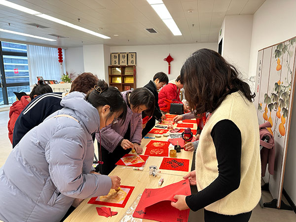 “笔墨纳福区”内,书法爱好者们凝神挥毫,“龙马精神”“福启新程”“国泰民安”等一幅幅寓意吉祥的春联、福字新鲜出炉,墨香四溢间承载着对新春的美好期许,职工群众争相领取,将满满的福气带回家;“巧手迎春区”里,剪纸艺人指尖翻飞,一张张红纸化作栩栩如生的生肖马、吉祥纹样,古法拓印体验则让参与者在一拓一印中感受传统技艺的魅力,沉浸式感悟匠心传承的温度。“平时很少有机会接触拓印技艺,今天亲手拓了一幅‘福’字,不仅学会了简单技法,还感受到了传统文化的厚重感,这份新春礼物太有意义了!”刚完成拓印体验的职工林女士拿着作品,脸上满是成就感。