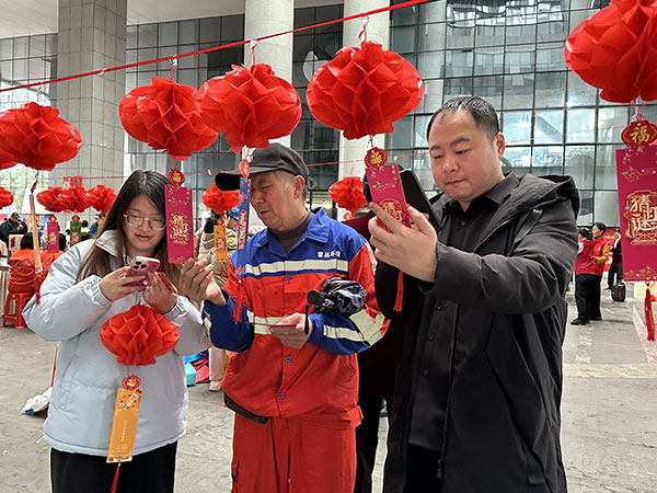 活动现场各板块亮点纷呈、暖意融融。传统文化展示区开展吟诗送柳互动活动,让职工群众在沉浸式体验中领略中华优秀传统文化魅力,实现文化传承与精神滋养双向赋能;健康服务区提供中医脉诊、口腔检查、视力检测等公益服务,以专业力量为职工群众身心健康保驾护航;便民服务区设置公益理发,为在榕过年的职工提供生活便利,传递贴心关爱;互动游园区设置投壶、猜谜、套圈等民俗游戏,搭配集章兑礼趣味机制,让大家在欢声笑语中收获新春喜悦,现场年味浓郁、氛围热烈。