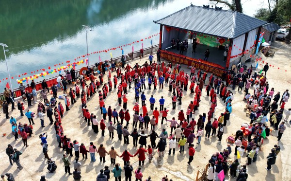 2月20日,广西柳州市三江侗族自治县斗江镇周牙村周村屯举办戏台落成庆典,当地群众以姑巴回门、文艺展演、多耶、百家宴等丰富活动,在浓浓年味中尽展侗乡多彩风情。