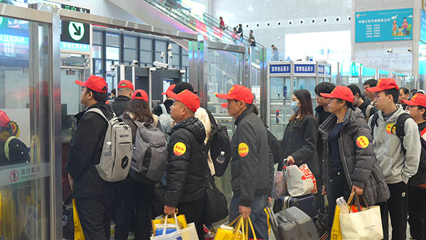 当天上午,柳州市各县区务工人员乘坐“点对点”大巴来到柳州站,在铁路工作人员的引导下进站乘车。据悉,这趟列车全程运输时间3小时52分,务工人员抵达广州南站后,将由专车接送至深圳、佛山、中山等地的企业,助力企业复工生产。