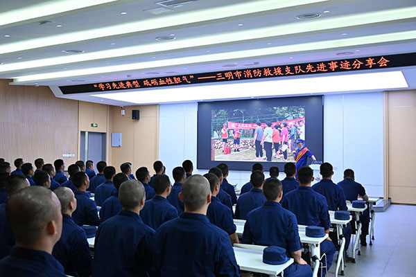4月17日,福建三明市消防救援支队在三明沙县现代化实战消防综合训练基地举办“学习先进典型 砥砺血性胆气”先进事迹分享会,继承和发扬消防救援队伍“特别能吃苦、特别能战斗、特别能奉献”的优良传统,激励消防救援人员在消防救援事业新征程中奋勇争先、建功立业。