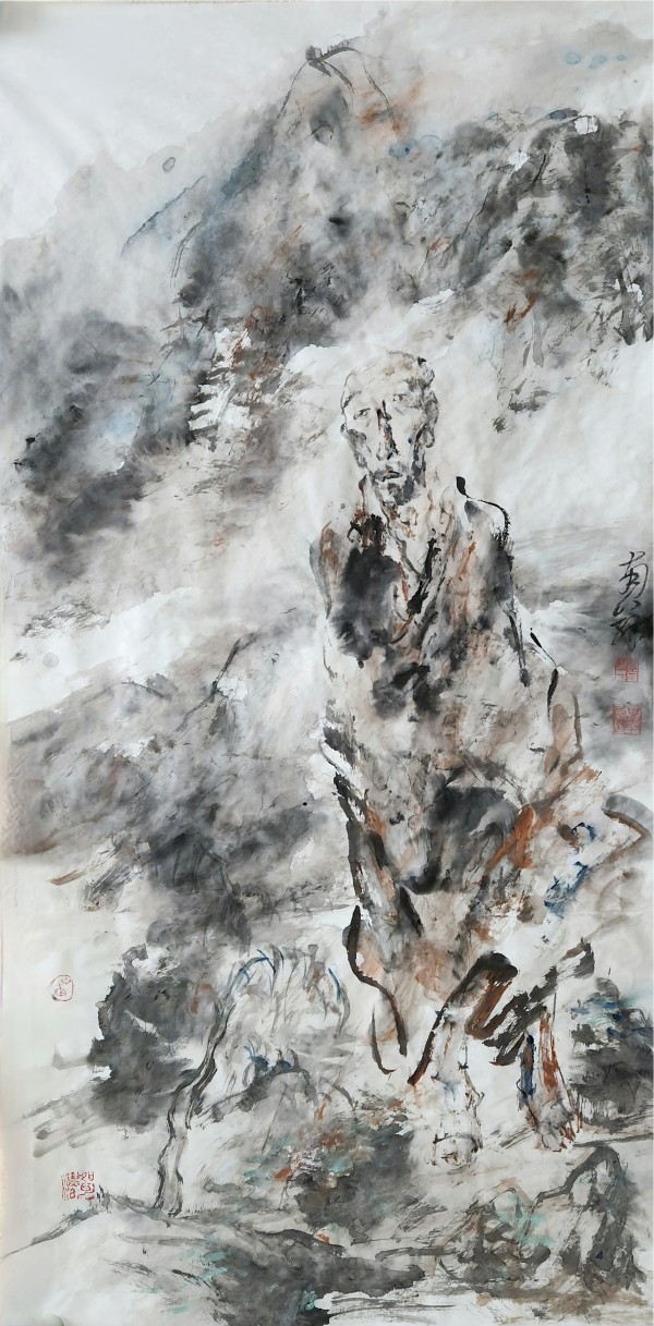后来,李世南作画或人物,或山水,或人物共山水,皆超越形象,超越笔墨,全自性情中流露而出,至其天机自运,阳开阴阖,迅发惊绝,气振而有余,故无复山水人物之相矣。至此,李世南的画已入“化”境了。