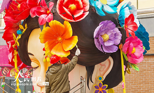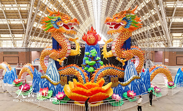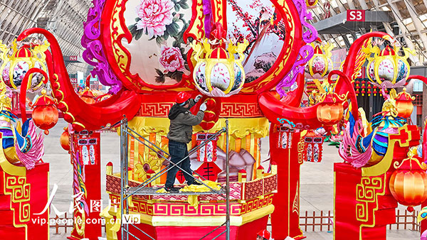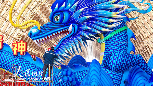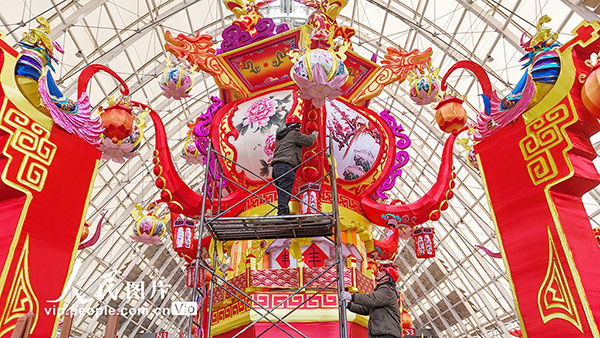 春节临近,位于山东青岛西海岸新区的中铁青岛世界博览城内,来自四川自贡的工匠们在精心制作和组装大型灯组,迎接即将开幕的马年灯会。