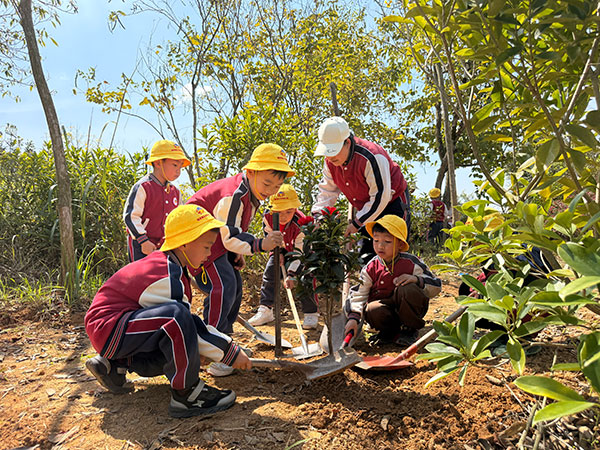 此次活动恰逢全国植树节,幼儿园以实践课堂的形式,让孩子们在亲近自然的过程中,培养爱护环境、热爱劳动的良好习惯,树立生态保护意识。(庞革平 樊绍光摄影报道)