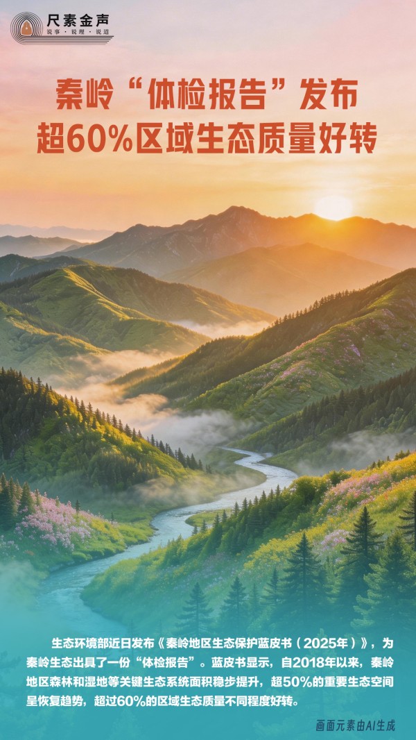 生态环境部近日发布《秦岭地区生态保护蓝皮书(2025年)》,为秦岭生态出具了一份“体检报告”。蓝皮书显示,自2018年以来,秦岭地区森林和湿地等关键生态系统面积稳步提升,超50%的重要生态空间呈恢复趋势,超过60%的区域生态质量不同程度好转。