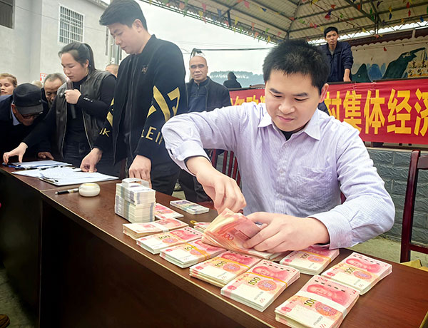 2月6日,广西来宾市忻城县欧洞乡永合村举行2025年度集体经济收益分红大会,837户群众现场领到分红款。这是该村连续第三年为村民发放分红,实打实的红利让村民们喜提“新春红包”,欢声笑语满村屯。