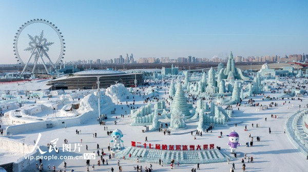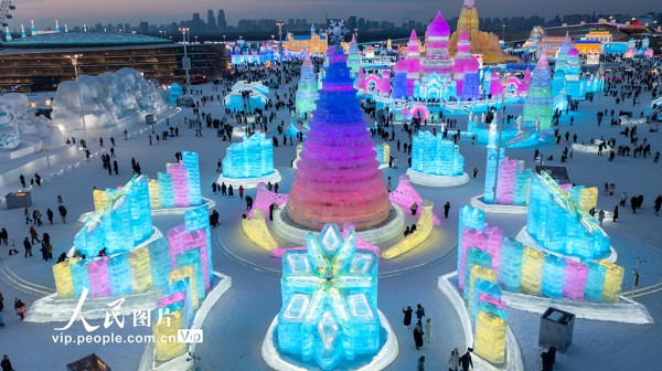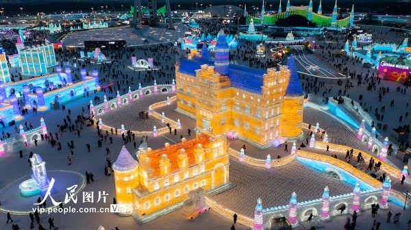 2026年1月1日,黑龙江哈尔滨冰雪大世界景区游客络绎不绝。王昭博摄(人民图片网)