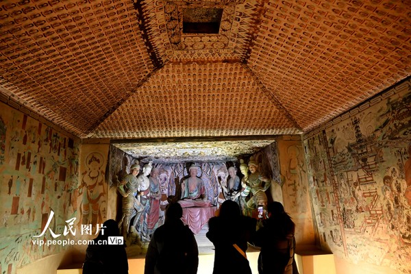 元旦假期,游客走进甘肃敦煌博物馆、敦煌书局、敦煌印局等文化场馆,参观学习,体验文化魅力。张晓亮摄(人民图片网)