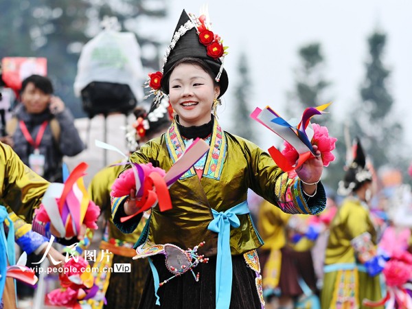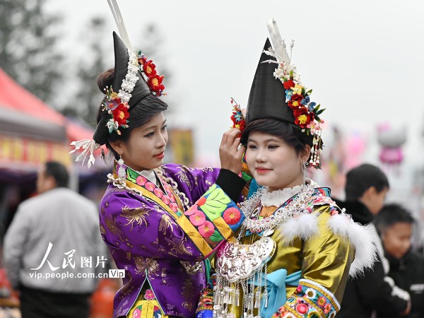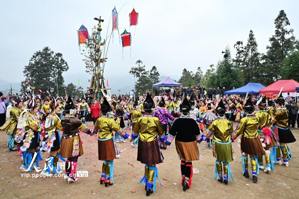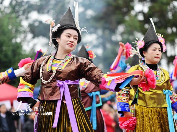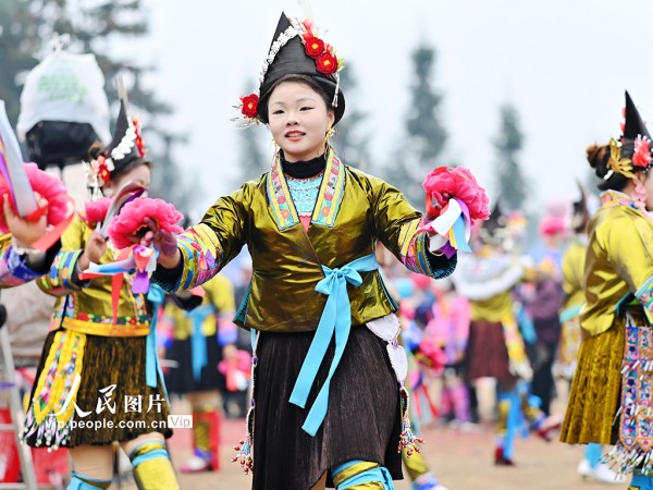 2026年1月3日,广西融水苗族自治县良寨乡大里村举办传统“苗年”芦笙节,吸引周边乡镇、三江侗族自治县及贵州从江县等地各民族群众欢聚一堂,身着盛装载歌载舞,共庆佳节。兰堃摄(人民图片网)