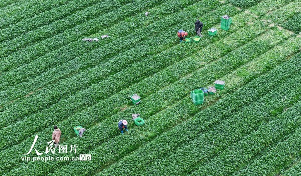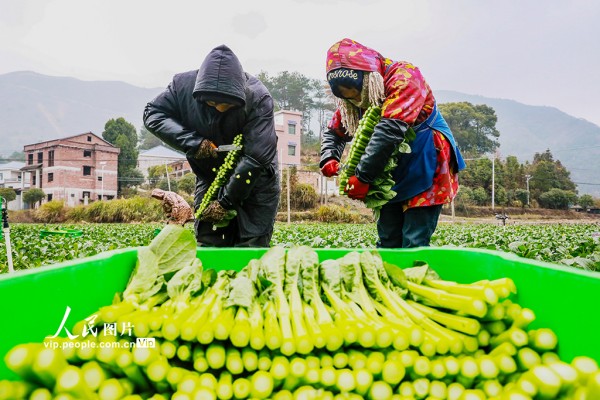元旦期间,新田县东升农场蔬菜基地根据节日需求,组织菜农及时采收,保障市场供应。刘贵雄摄(人民图片网)