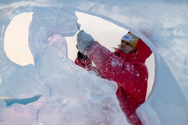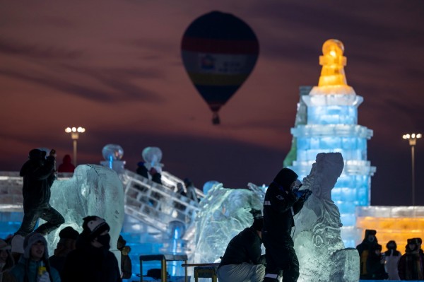 1月3日,在哈尔滨冰雪大世界进行的第37届中国·哈尔滨国际冰雕比赛进入第二天赛程,来自12个国家的76位选手在严寒中精雕细琢,参赛作品已芳容初现。新华社记者 张涛 摄