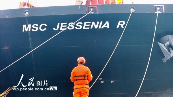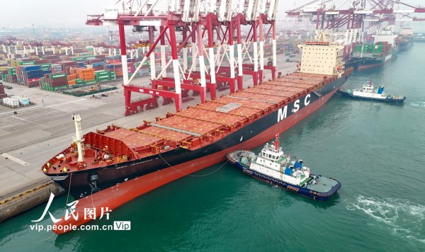 1月4日,澳洲直航新航线首班船舶——“地中海杰西尼亚”轮靠泊山东港口青岛港。