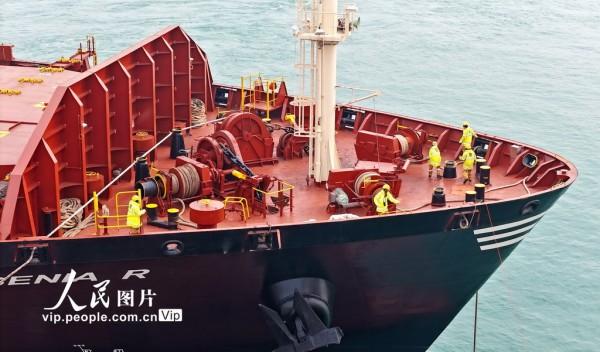 2026年1月4日,澳洲直航新航线首班船舶靠泊山东港口青岛港,标志着该港2026年首条外贸新航线正式开通。张进刚摄(人民图片网)