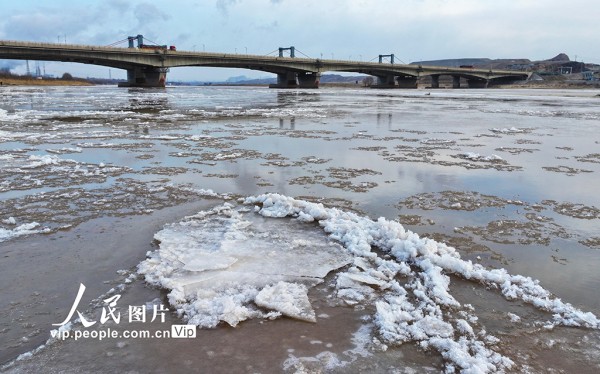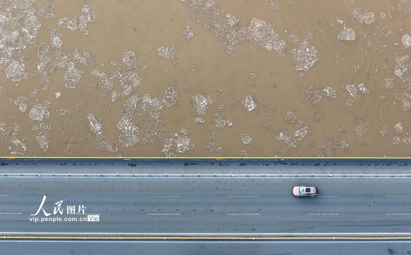 近日,受寒潮降温影响,黄河宁夏石嘴山段出现流凌景观。大片冰凌顺流而下,相互碰撞,构成一幅壮美的冬日画卷。袁宏彦摄(人民图片网)