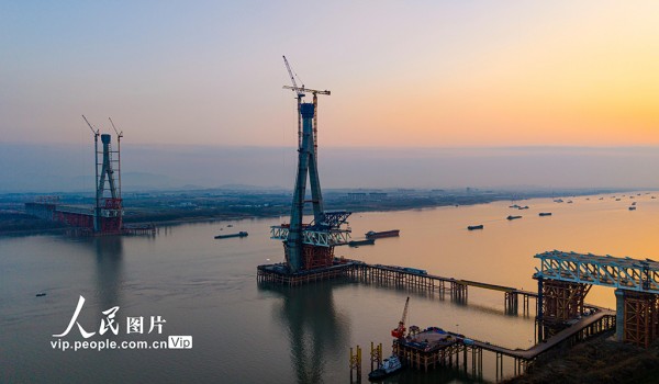 池州长江公铁大桥连接池州贵池区与铜陵枞阳县,按“公路+城际铁路+城市轨道交通”多功能合并过江标准建设。大桥建成后,对落实长江经济带发展战略、加强皖江区域基础设施、优化过江通道布局、推进长三角一体化发展具有重要作用。刘伯顺摄(人民图片网)