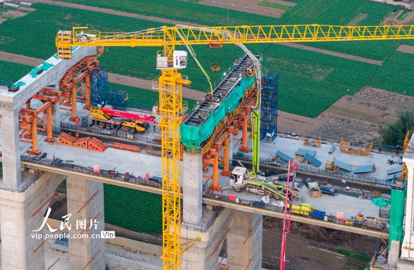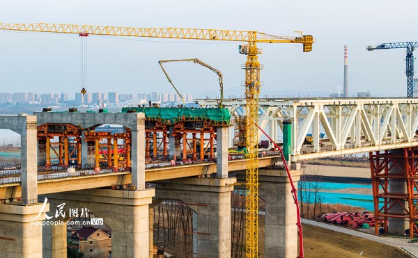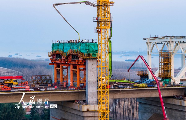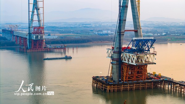 2026年1月16日,安徽铜陵枞阳县,池州长江公铁大桥建设正加快推进。