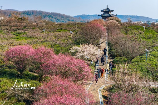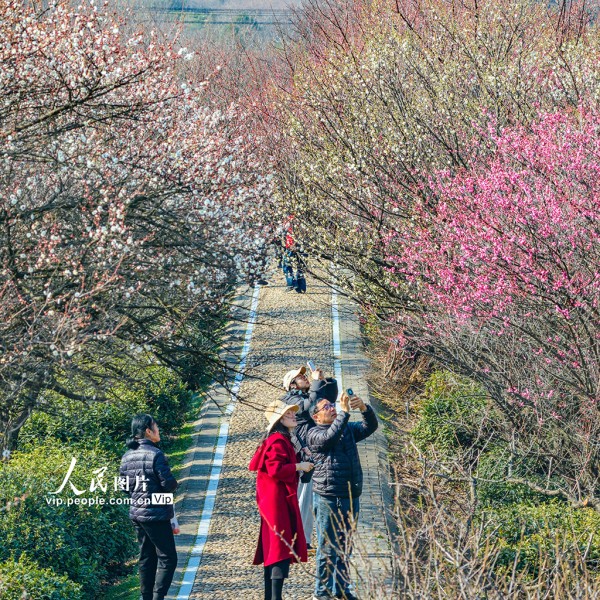 2026年1月16日,江苏南京溧水区傅家边梅花山梅花渐次开放,吸引众多游客前来观赏。朱红生摄(人民图片网)