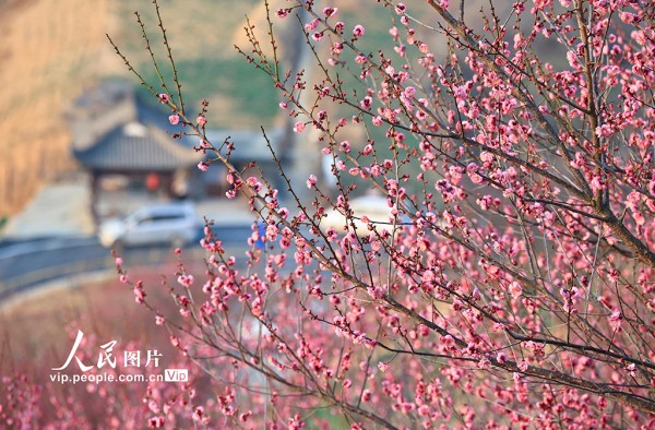 2026年1月18日,安徽歙县霞坑镇石潭村,梅花绽放,幽香浮动,吸引游客前来赏花拍摄。郑宏摄(人民图片网)