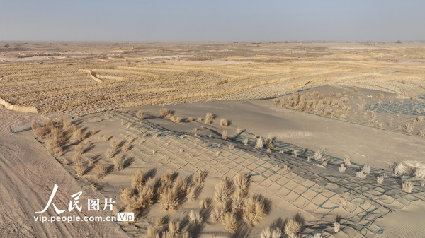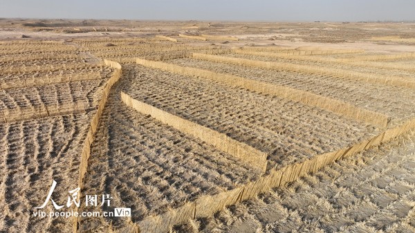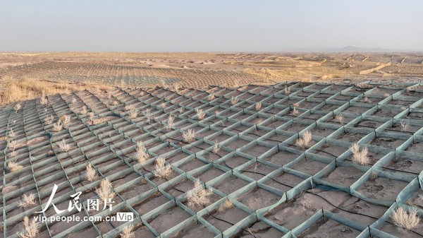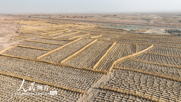 近年来,金塔县以“三北”工程和沙漠边缘阻击战为契机,推动生物压沙、草方格压沙与现代治沙技术融合,持续推进沙线锁边与重点风沙口治理,以更加科学系统的举措,让绿色屏障在大漠中不断延伸,筑牢河西走廊的生态防线。曹红祖摄(人民图片网)