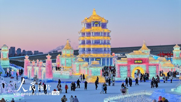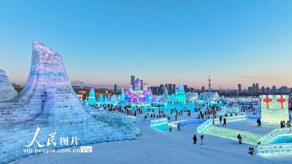 据悉,该园区占地面积达120万平方米,总用冰用雪量突破40万立方米,规模创历届之最。哈尔滨冰雪大世界始创于1999年,是全球规模最大的冰雪主题乐园之一。何华文摄(人民图片网)