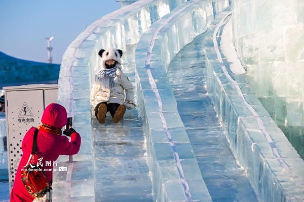 2026年1月23日,黑龙江哈尔滨,游客在第二十七届哈尔滨冰雪大世界游玩。